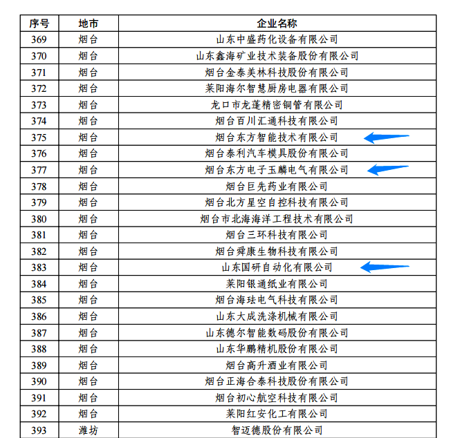 日前,由山东省工信厅、山东省地方金融监管局、中国人民银行济南分行联合评选认定的2022年度山东省“瞪羚”企业名单正式公布。我集团公司的烟台成都腾烁科技有限公司玉麟电气有限公司、山东国研自动化有限公司、烟台东方智能技术有限公司等三家权属企业入选,认定日期为即日起至2025年12月31日。